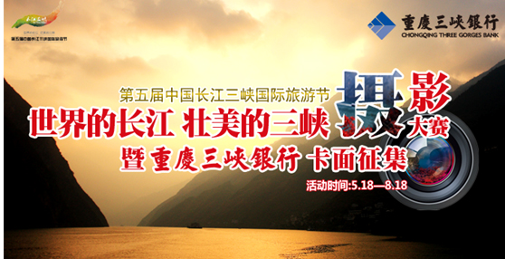 由我行独家冠名的第五届中国长江三峡国际旅游节“世界的长江、壮美的三峡”摄影大赛正式启动。本次摄影大赛时第五届中国长江三峡国际旅游节的重要活动之一。在本次活动中,摄影爱好者将通过镜头传递出长江三峡的至美风景,向国内外展示长江三峡独特而隽永的自然人文风情,借此推动长江三峡旅游景区国内外影响力。